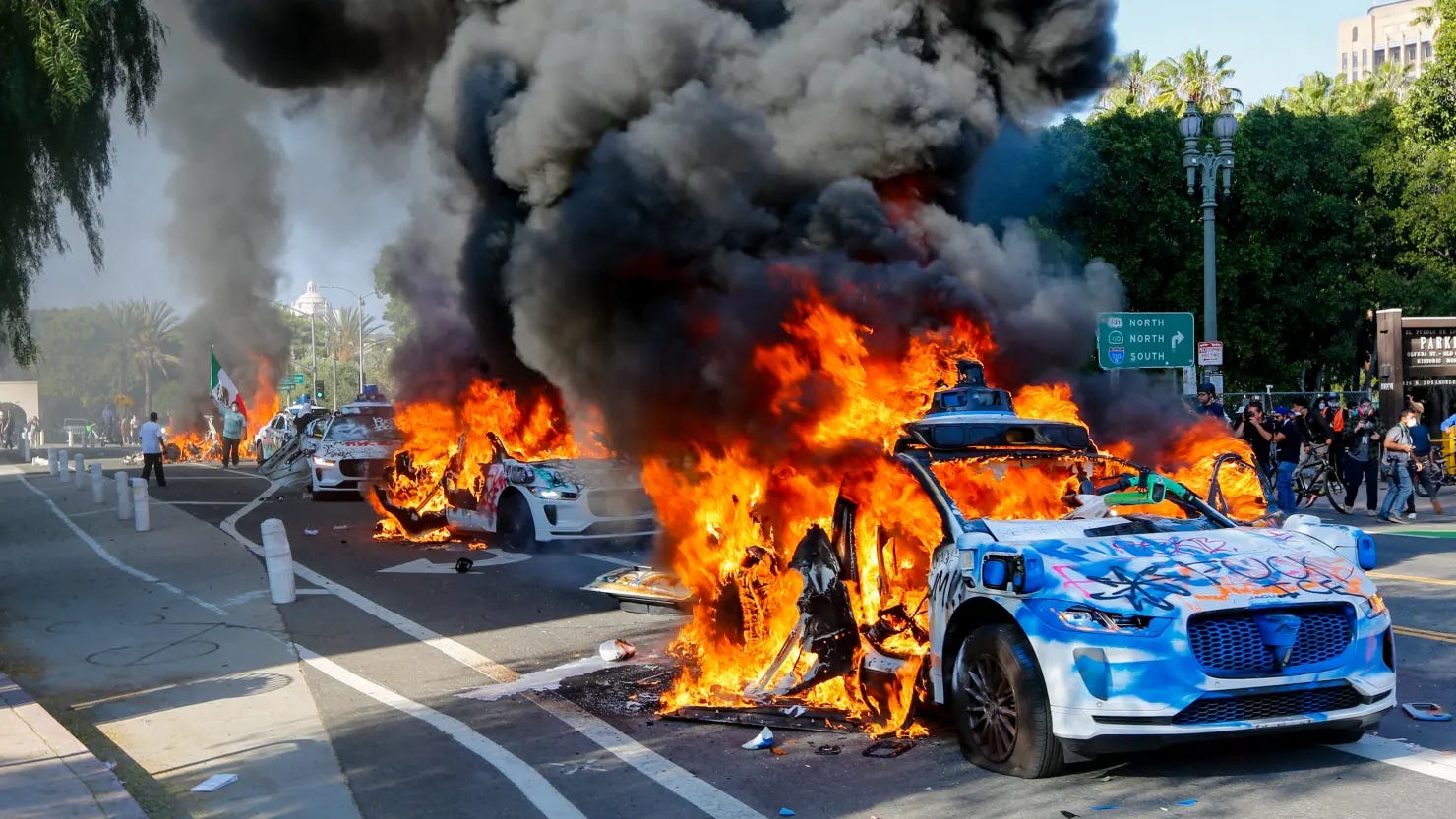 Even though the fight against fascism never went away, it is inspiring to see it reignited with such force. Two days of open fighting with BORTAC and ICE swat teams provoked Trump to take control of the California national guard and threaten to send in the marines. In the face of a military invasion, Migrants and their families, community members, and anarchists, created makeshift barricades, vandalized numerous LAPD vehicles, and set fire to multiple self-driving cars the local police use to spy on civilians.